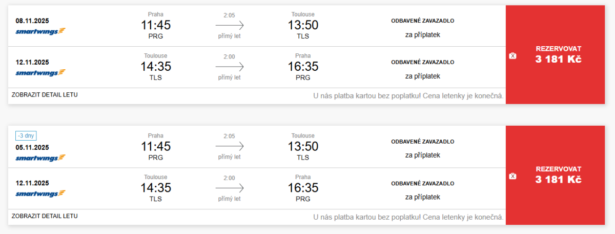 Ceny letenek se Smartwings jsou super, termínů je dost a rozložené jsou na delší období. Létá se i s kabinovým zavazadlem, takže za mě výhodná akce.