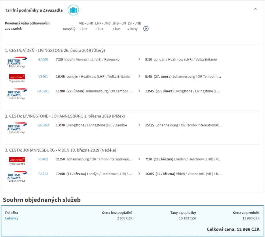 - Čeká tě přestup na letišti Dva přestupy v Londýn-Heathrow a Johannesburg