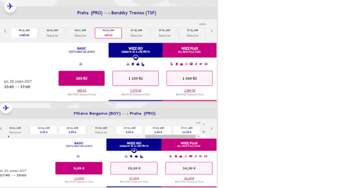 Využijte levných prázdninových letenek Wizz Air z Prahy do Benátek a zpět z Bergama do Prahy k pohodovému letnímu výletu po skvostech severní Itálie. Nejlevnější kombinace letenek startuje na 659 Kč při členství v klubu WDC (co to je a vyplatí se pořídit?), přičemž cesta z Benátek do Bergama se dá zařídit výhradně dle vašich preferencí. Zastavit se můžete ve Veroně, Padově, Vicenze nebo u Lago di Garda. Vlaky i autobusy jezdí po dané trase každou chvilku a tak nebude problém si cestu nakombinovat podle sebe.