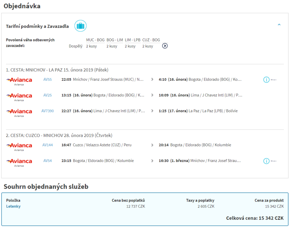 Jen poznamenám, pozor na dokoupení přípojů v Latinské Americe právě s Aviancou. Nejnižší tarif není pro gringa, ale jen pro místní. To samé platí o LATAM.