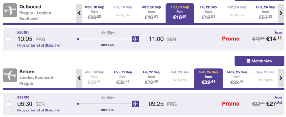 Dnešní den slaví aerolinka Flybe své 15. narozeniny a v rámci oslav uvolnila do světa promo kód na letenky ve výši 15 % z celkové částky. Pokud jej využijeme s již tak levnými letenkami z Prahy na jižně položené „londýnské“ letiště Southend, dostáváme se na cenu 41 € za zpáteční let, a to třeba rovnou od pátku do neděle.