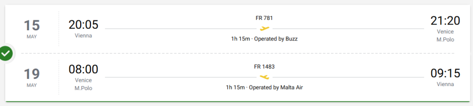 Toužíte po špetce italské romantiky? Využijte levné letenky od Ryanairu, který nabízí spojení z Vídně do Benátek (letiště Marco Polo) za cenu 30 EUR. Termíny jsou dostupné téměř po celý květen a červen i částečně na červenec.