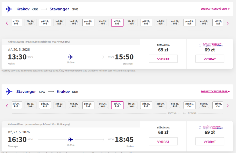 Letecká nízkonákladová společnost Wizz Air nabízí výhodné zpáteční lety z Krakova do dvou ikonických měst norských fjordů.