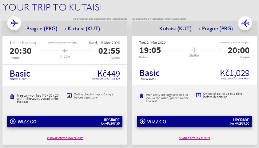 Společnost Wizz Air po delším čase snižuje cenu na své přímé lince z Prahy do středogruzínského města Kutaisi k hranici 2 000 Kč za zpáteční let. Při cestě z Prahy je právě tato částka dlouhodobě nejnižší, na jakou se lze dostat. Lety z Katovic nebo Wroclawi bývají v akci častěji, nicméně aktuálně je cena z Prahy vůbec nejnižší ze všech letišť v ČR a okolí.