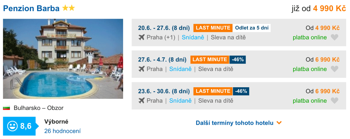 Tak neni spatne , ale super last minute by se mohlo jeste pohybovat o nejakou tu 500 Kc mene i kolem 4000 Kc , stejne ta cestovka ma ty ubytovani nasmlouvane a letadlo taky zaplatit musi ..