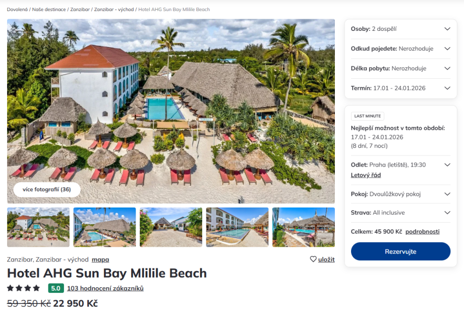 Všechny zájezdy na Zanzibar si můžete porovnat v našem srovnávači podle ceny, termínu i kvality hotelu.