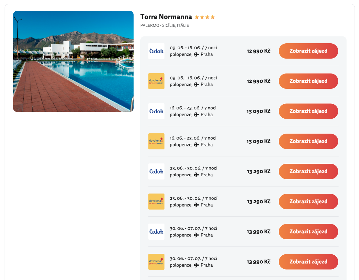 Červnové zájezdy za ceny nižší, než jsou last-minute nabídky nebo individuální skládačka? To je realita v případě dovolené na Sicílii. Zájezd na týden z Prahy do 4* hotelu Torre Normanna v Palermu s polopenzí vás vyjde jen na 12 990 Kč.