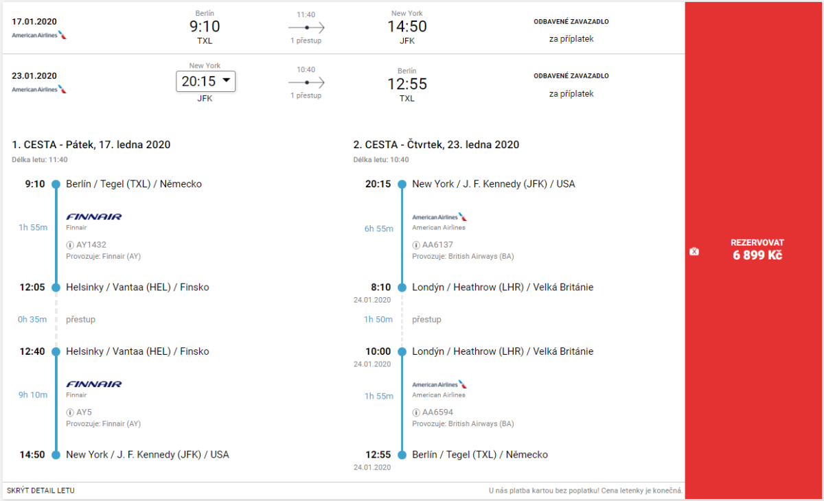 Letenky do Spojených států amerických opět zlevňují, především pokud rádi cestujete na lehko jen s příručními zavazadly. V dnešní akci společností British Airways, American Airlines a Iberia poletíme levně hned do šesti destinací napříč USA. Zaletět můžete nasát atmosféru zimního New Yorku či Bostonu, ohřát se na slunnou Floridu do Miami a Orlanda nebo poznat všechny krásy západních USA a navštívit Los Angeles. Nejlevnější lety pořídíte z berlínského letiště Tegel i z Mnichova.