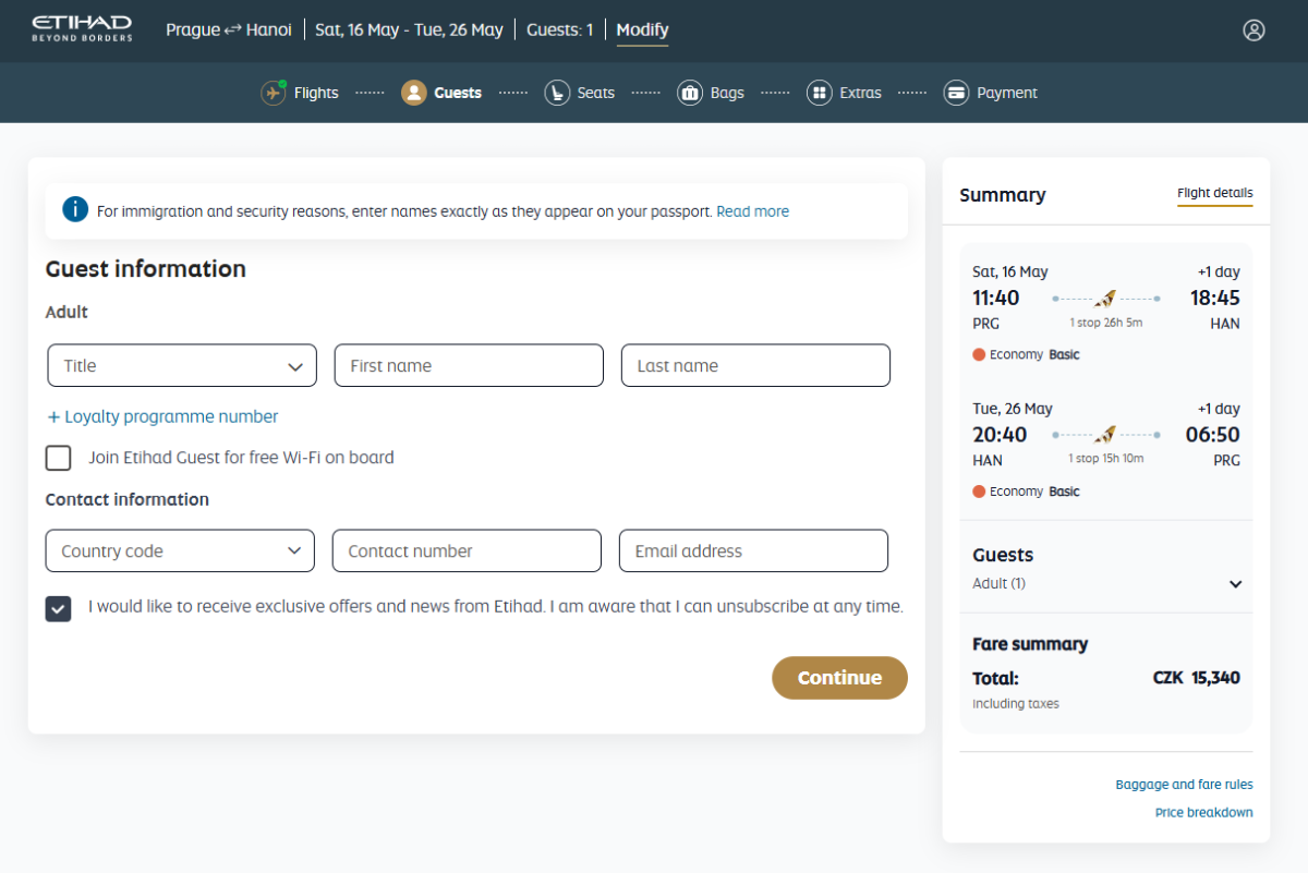Základní tarif Basic zahrnuje příruční zavazadlo. Pokud chcete cestovat s odbaveným zavazadlem, je k dispozici tarif Value za 16 222 Kč.
