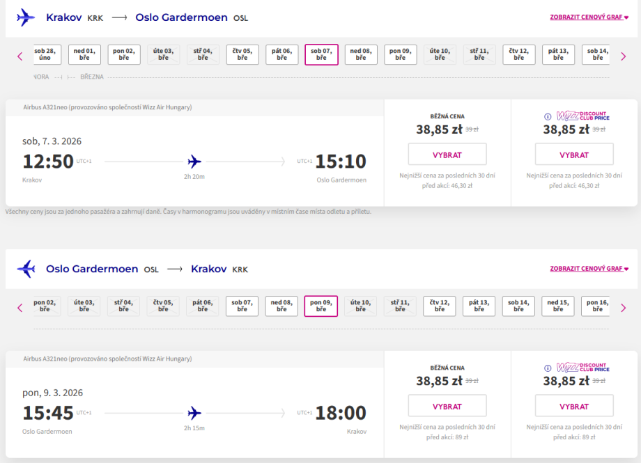 Cena platí pro členy i nečleny Wizz Discount Clubu.