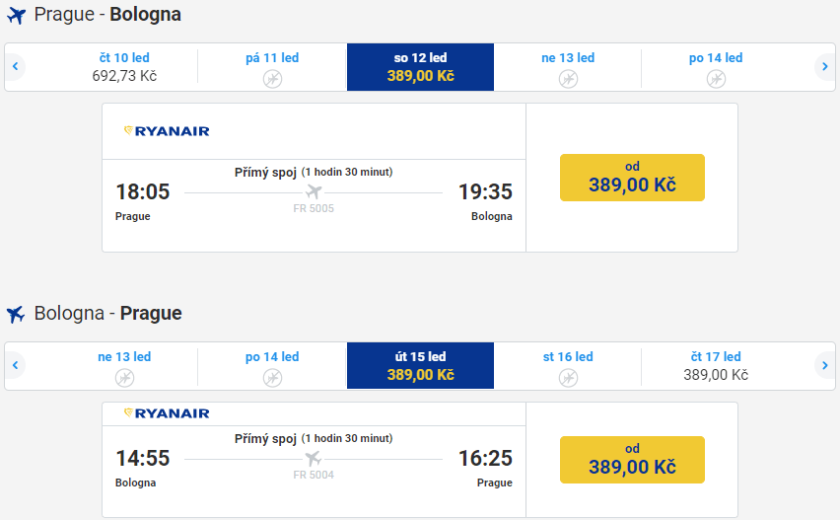 - Zpáteční letenka z Prahy do Boloni: 778 Kč