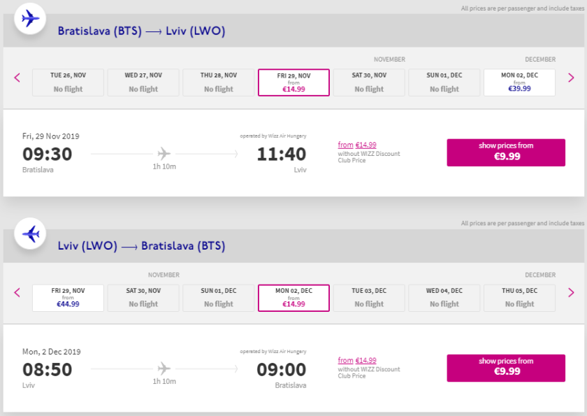 Hledáte-li neotřelou destinaci ideální na prodloužený víkend, která lze navíc jednoduše pojmout v low-stylu, zaostřete svoji pozornost na západ Ukrajiny. Levné letenky do třičtvrtěmilionového Lvova pořídíte na termíny během zimy už od 20 EUR za zpáteční letenku. Nejlevněji poletíte z Bratislavy se společností Wizz Air, kdy členové věrnostního klubu WDC zaplatí právě 20 EUR, nečlenové pak o 10 € více.