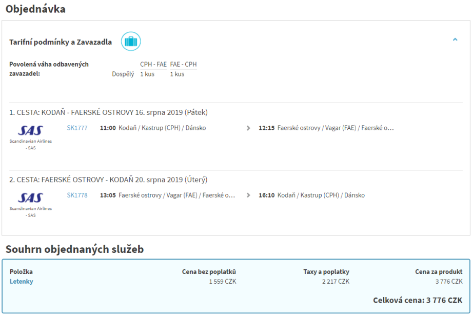 • 8. - 13.8., 15./16. - 20.8., 23. - 28.8.: Kodaň – Faery a zpět se SAS za 3.776 Kč
