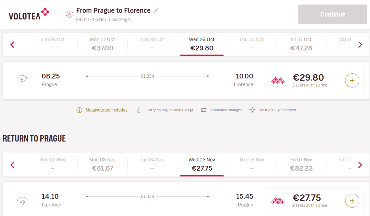 Megavolotea ceny: Při nákupu letenek zvolte ceny se členstvím Megavolotea, které následně v administraci u aerolinky ihned zrušíte. Členství se pro tuzemské cestovatele nevyplatí, ale aerolinka umožňuje nákup na 15 dní na zkoušku. Letenky za nižší cenu vám zůstanou, ale další benefity se zruší.