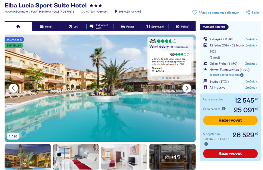 Cestovní kancelář TUI nabízí výhodný zimní zájezd na Fuerteventuru do 3* hotelu Elba Lucia Sport Suite Hotel, který se nachází nedaleko letoviska Caleta de Fuste.