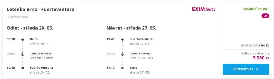 Cestovní kanceláře EXIM Tours a Fischer nabízejí výhodné zpáteční letenky na oblíbený Kanárský ostrov Fuerteventura. Zpáteční letenky z Brna pořídíte za parádních 4 990 Kč.