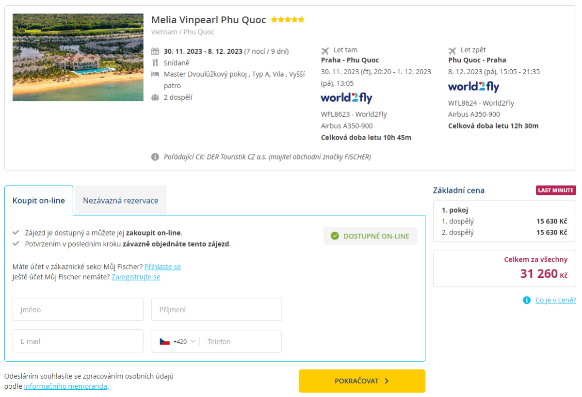 Dovolenou rezervujte jednoduše skrze náš vyhledávač zájezdů do Vietnamu nebo přímo na webu fischer.cz.