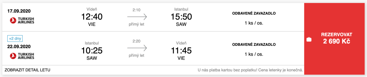 Za zvýhodněnou cenu můžete aktuálně letět z Vídně do tureckého Istanbulu na pomezí Evropy a Asie. Letenky za 2 690 Kč najdete do konce října vyjma letních prázdnin a v ceně letenky je i zapsané zavazadlo do 23 kg. Do Istanbulu přiletíte na letiště Sabiha.