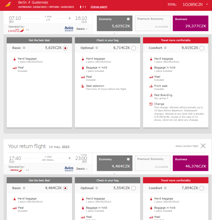 Výborné ceny letenek do Střední Ameriky jsme zachytili v rezervačním systému aerolinky Iberia. Zpáteční letenky na květen, kdy ještě panuje dobré počasí, z Berlína či Mnichova do Guatemaly pořídíte za parádních 10 089 Kč, resp. 12 268 Kč v tarifu Optimal i s odbaveným zavazadlem a výběrem konkrétní sedačky zdarma.