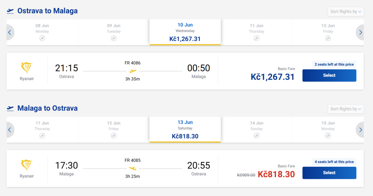 Letecká společnost Ryanair nabízí přímé lety z Ostravy do Málagy.