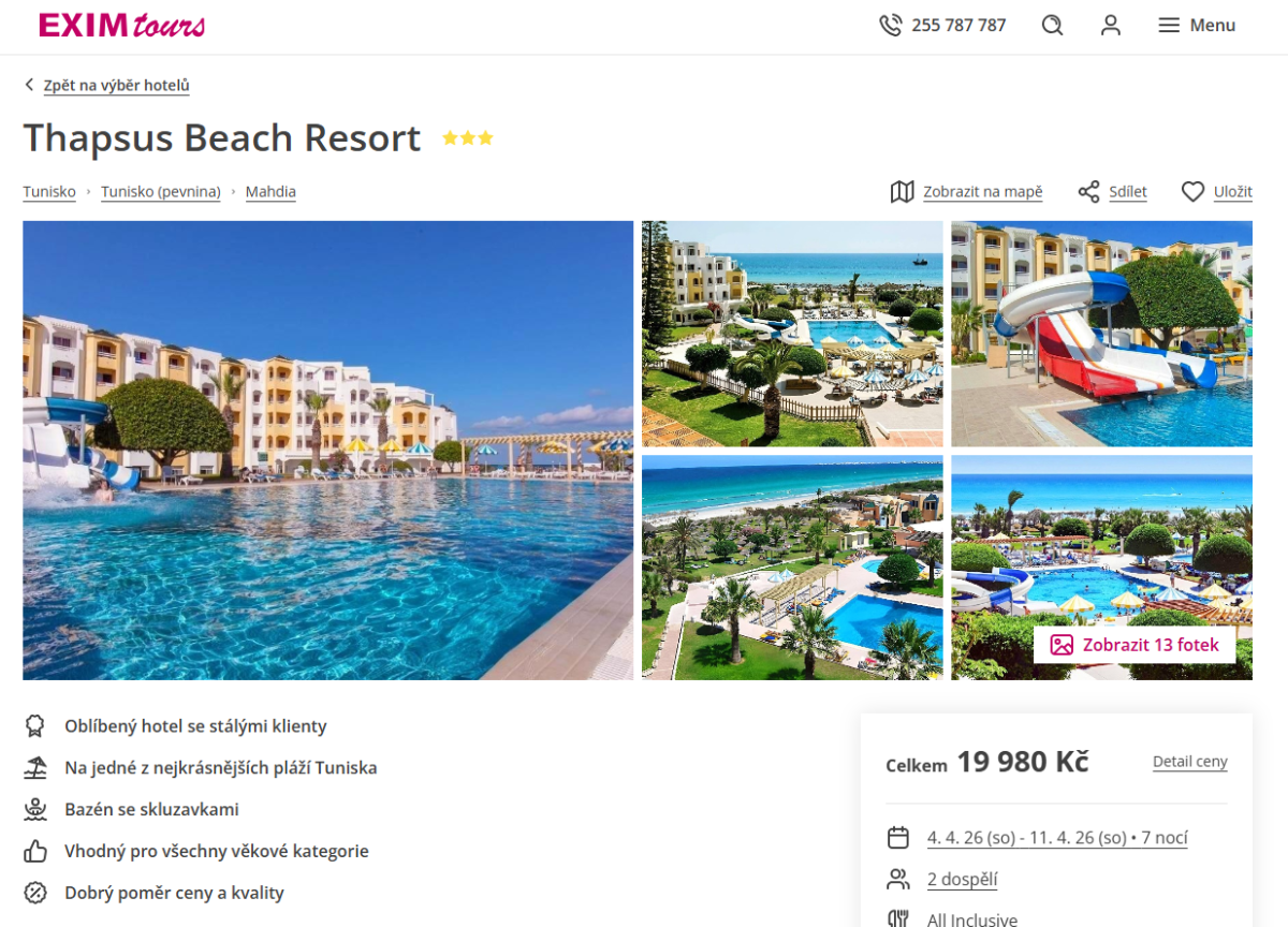 Cestovní kanceláře Fischer a Exim tours přicházejí s atraktivní nabídkou zájezdů do Tuniska s odletem 4. 4. a návratem 12. 4. Termín tedy vychází přes Velikonoční pondělí.