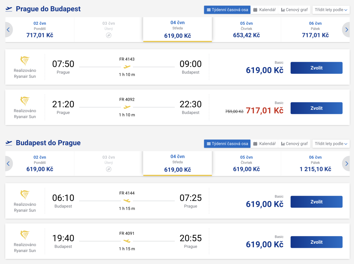 Komu by takto krátký výlet nestačil, dají se sehnat levné letenky na celé 2 dny od neděle 1. června do pondělí 2. června. Následně je nutné buďto volit dražší lety nebo delší pobyty zahrnující 4 a více nocí.