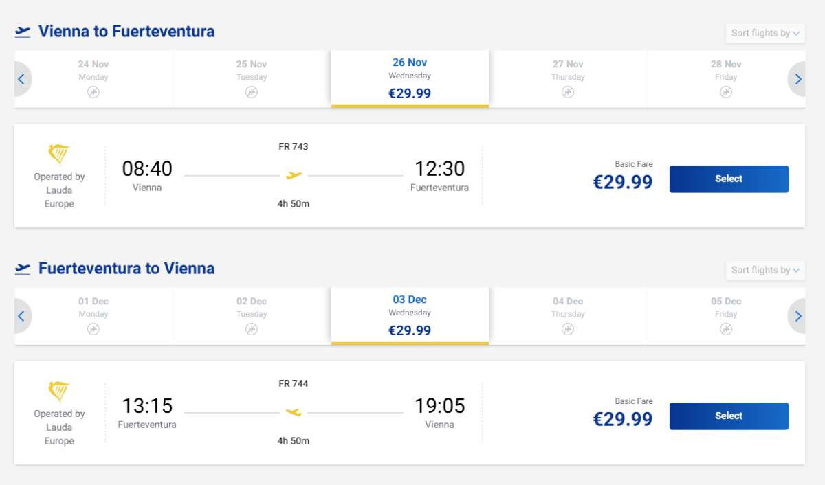Prosinec je ideální čas na návštěvu Kanárských ostrovů – teploty se pohybují kolem 23 °C, moře je stále teplé a turistů výrazně méně než v létě. Z Vídně můžete se společností Ryanair letět na tři oblíbené ostrovy – Fuerteventuru, Lanzarote a Gran Canarii.