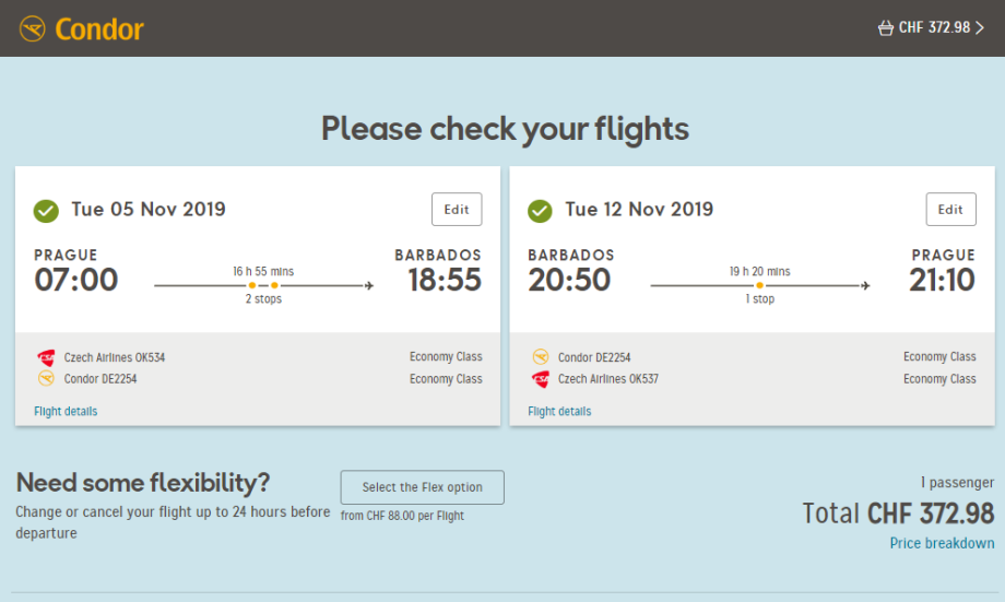 Německá aerolinka Condor přichází s dalším snížením cen z Prahy na karibský ostrov Barbados, kterým se dostáváme na historicky nejnižší cenu letenek do této země z ČR. Bonusem je navíc odbavené zavazadlo do 20 kg v ceně letenky i rychlá cesta bez zbytečně dlouhých přestupů. Letenky nejlevněji koupíte ve švýcarských francích (373 CHF), při platbě v eurech se po přepočtu dostaneme na čásku asi o 300 Kč vyšší. Období, na které se vztahuje akce, navíc kopíruje hlavní sezonu bez dešťů.