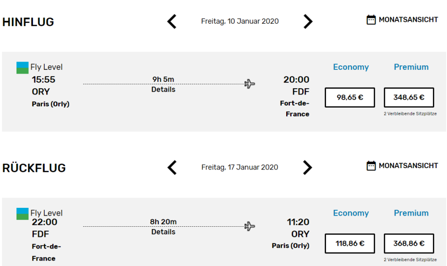 Oblíbené low-cost letenky společnosti Level z Paříže do „francouzského“ Karibiku jsou zpět, a to i na spoustu termínů přes hlavní sezonu, tedy během zimy. Zpáteční letenka z pařížského letiště Orly do města Fort de France na ostrově Martinik vyjde na 218 EUR, podobně jako na sousední Guadeloupe (Pointe-a-Pitre), u kterého je však termínů výrazně méně a špatně navazují na lety ze střední Evropy.