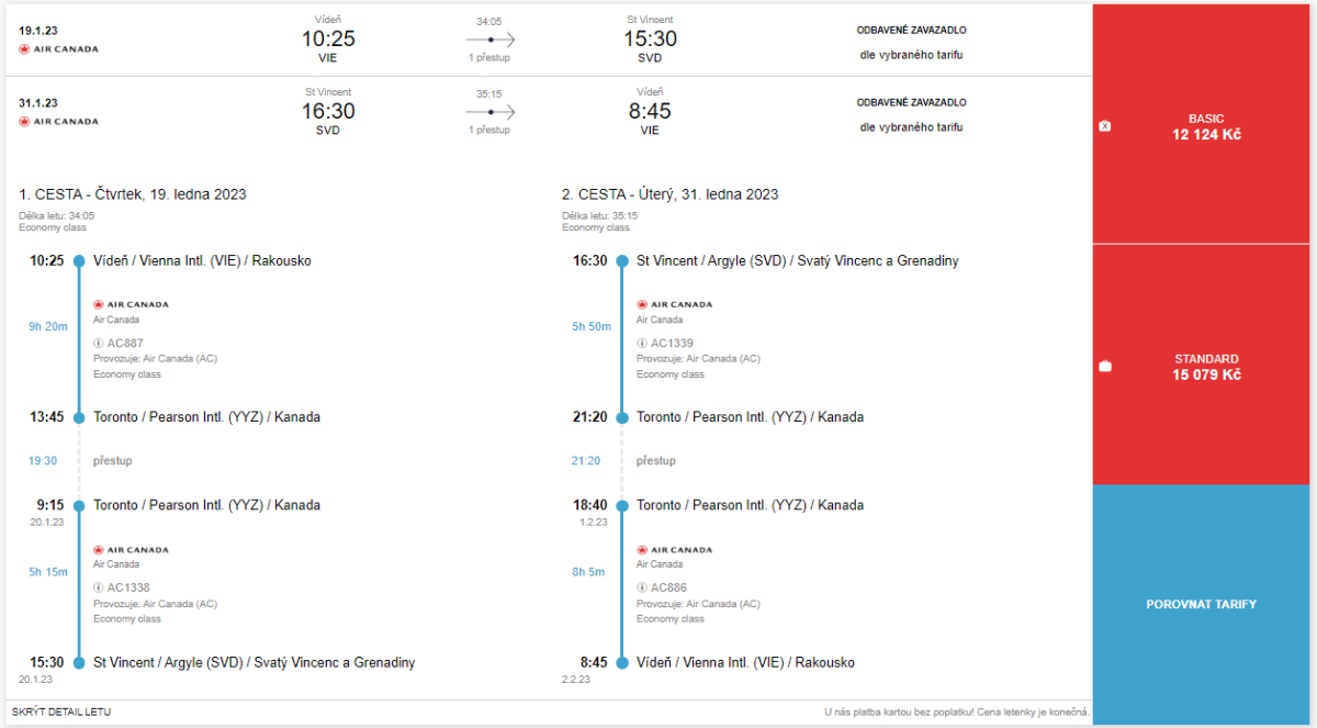 Při cestě počítejte s delší pauzou přes noc v Torontu, kterou však díky celkem výhodným časům můžete pokaždé využít k návštěvě města. Při cestě na Svatý Vincenc se navíc z Evropy bez nocování na přestupním bodě stejně nevyhnete, ať už poletíte s jakoukoliv aerolinkou.