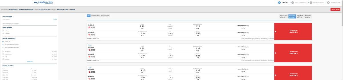 Pro středočechy může být alternativou nabídka LOTu s cenou od 8 360 Kč, která je ale limitována na měsíce ze začátku roku 2025 a kde není v ceně odbavené zavazadlo.