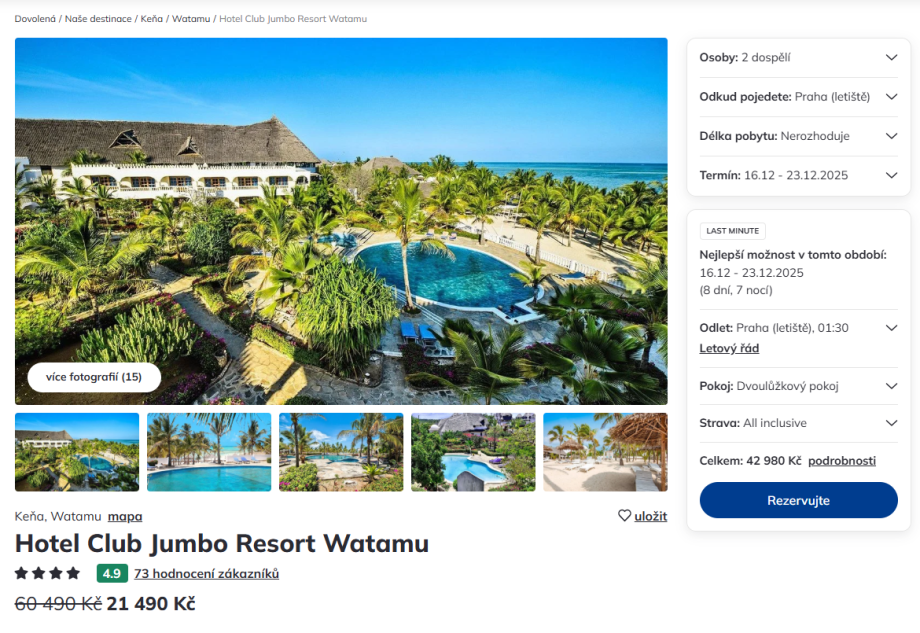 Další nabídky zájezdů do Keni si můžete porovnat v našem vyhledávači podle ceny, termínu a typu hotelu.