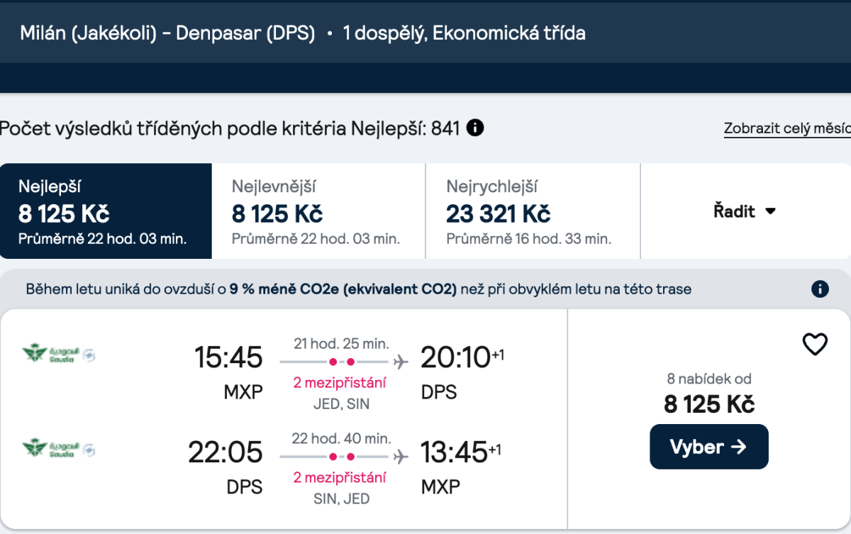 Ano. Ale nesouhlasím. Nejde o to ,ze si nemůžeš akci dovolit ale je to dost komplikované takové cestování. Jsou to dost známé destinace ,abychom museli cestovat tak složite. Ve finále nic nešetřiš. A pokud už nekdo takhle chce letět tak s nejbližšího města max. s jednim prestupem. Ne na západ a pak na východ. Většina lidi co takhle léta si připlatí. Letenky jsou vůči našim mzdám za hubičku. Jen málo lidi to vi. Na akce se už nedívám. Když mám cíl někam letět tak co s nejefektivnějším plánem.