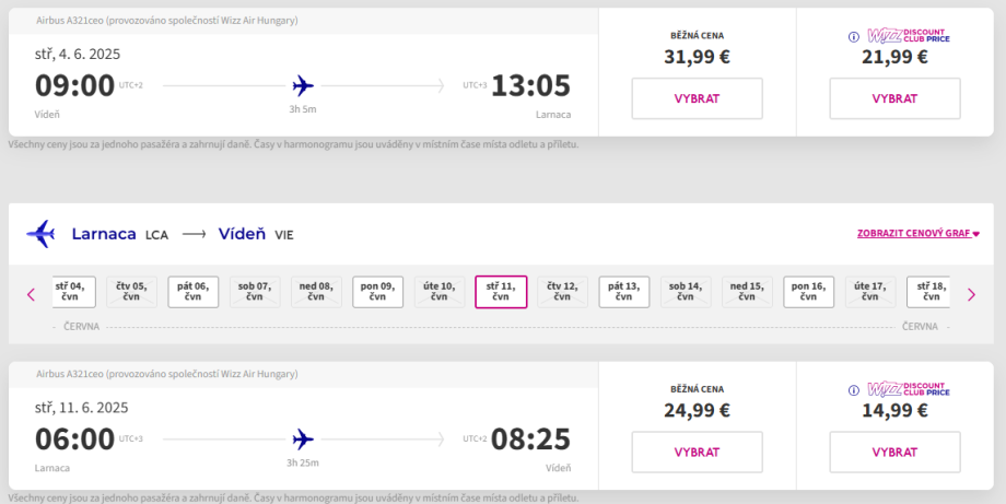 Využijte výhodné ceny letenek s Wizz Air a vyrazte v červnu na Kypr. Zpáteční lety z Vídně do Larnaky pořídíte už za 57 EUR, členové Wizz Discount Clubu dokonce jen za 37 EUR. Ideální příležitost pro týdenní dovolenou plnou slunce, moře, památek a skvělého jídla.