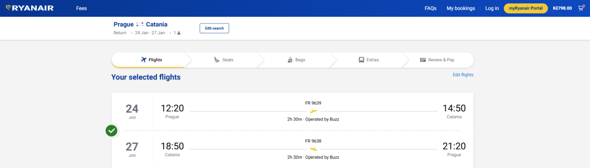 Odlet z Prahy vychází na sobotu 24.1. ve 12:20, návrat z Catanie je v úterý 27.1. v 18:50, takže vás nečeká žádné brzké vstávání ani noční návraty.