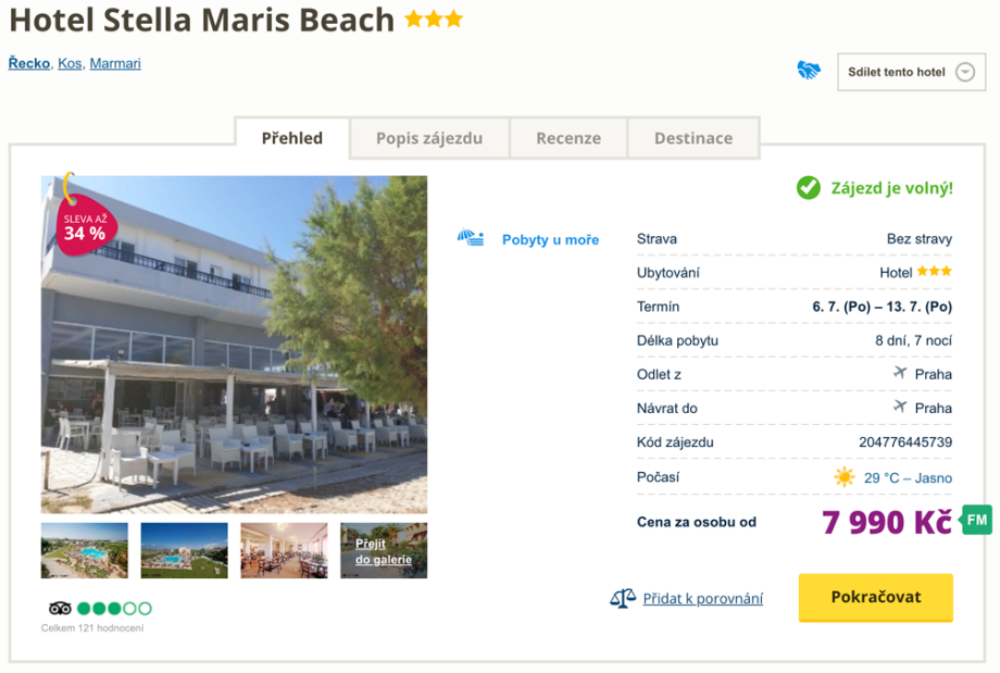 Po kliknutí na "Vyhledej" se objeví, že nabídka neexistuje. A to je 4 hodiny po zveřejnění. Asi jen skrytá reklama cestovky.