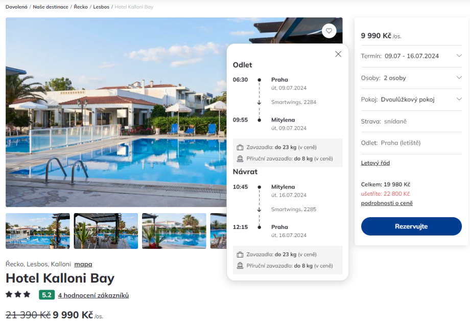 Tento zájezd zarezervujete přímo na stránkách CK cedok.cz a společně s ostatními nabídkami jej snadno porovnáte v našem srovnávači zájezdů do Řecka.