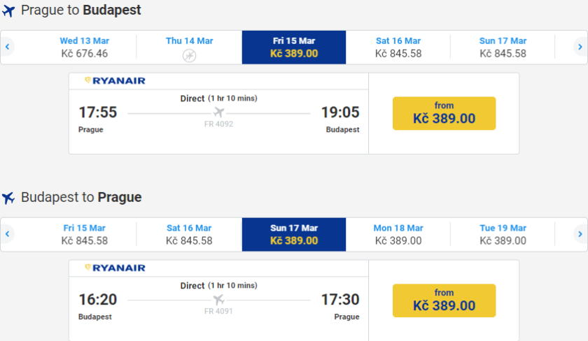 Využijte zlevněných přímých letů z Prahy do Budapešti a podnikněte krátký výlet do maďarského hlavního města bez nutnosti kodrcání se po zemi. Na výběr máte z ideálních dvoudenních termínů od soboty do pondělí nebo dokonce od pátečního do nedělního odpoledne (např. 15.-17.3.), případně i krátkých 24 hodinových výletů obvykle dostupných přes pracovní týden. Kdo bydlí v Praze, nemá co řešit. Pokud budete cestovat na lehko, na letiště dorazte klidně hodinu a čtvrt před odletem, samotný let pak zabere zhruba hodinu. Navíc je levnější než jakýkoliv prostředek pozemní dopravy.