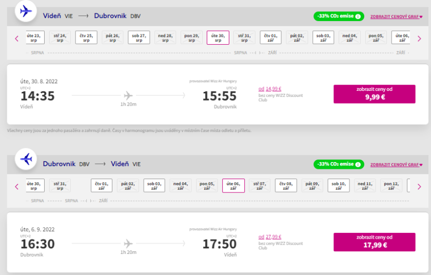 Skvělé ceny zpátečních letenek nabízí na mnoho termínů během léta aerolinka Wizz Air do krásného chorvatského Dubrovníku. Pokud máte letiště Vídeň za humny, pak není co řešit - podobné ceny na letní termíny se jen tak nevidí.