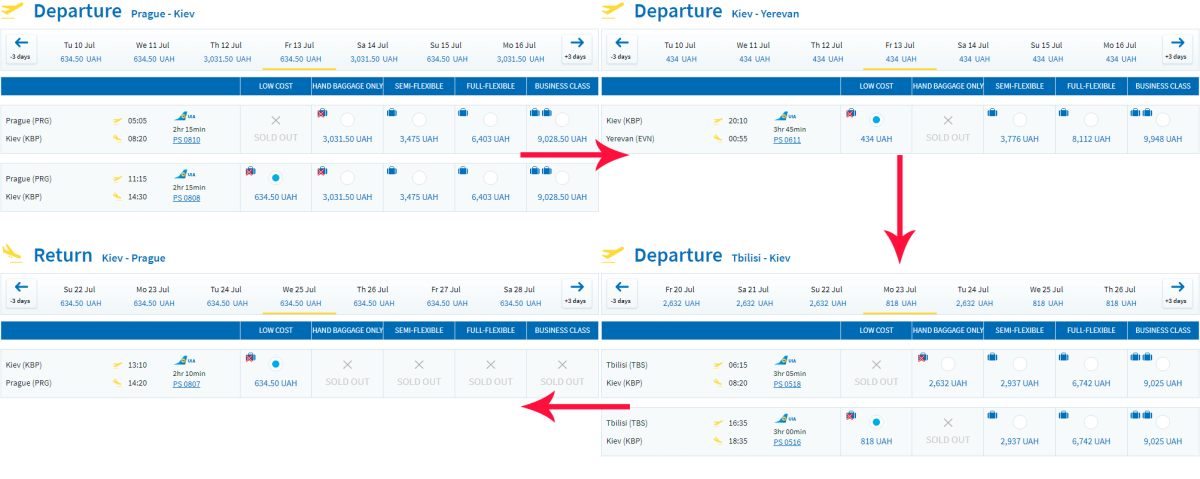 • 23. července, Tbilisi – Kyjev, 16:35 18:35 nebo 25. července, 6:15 8:20