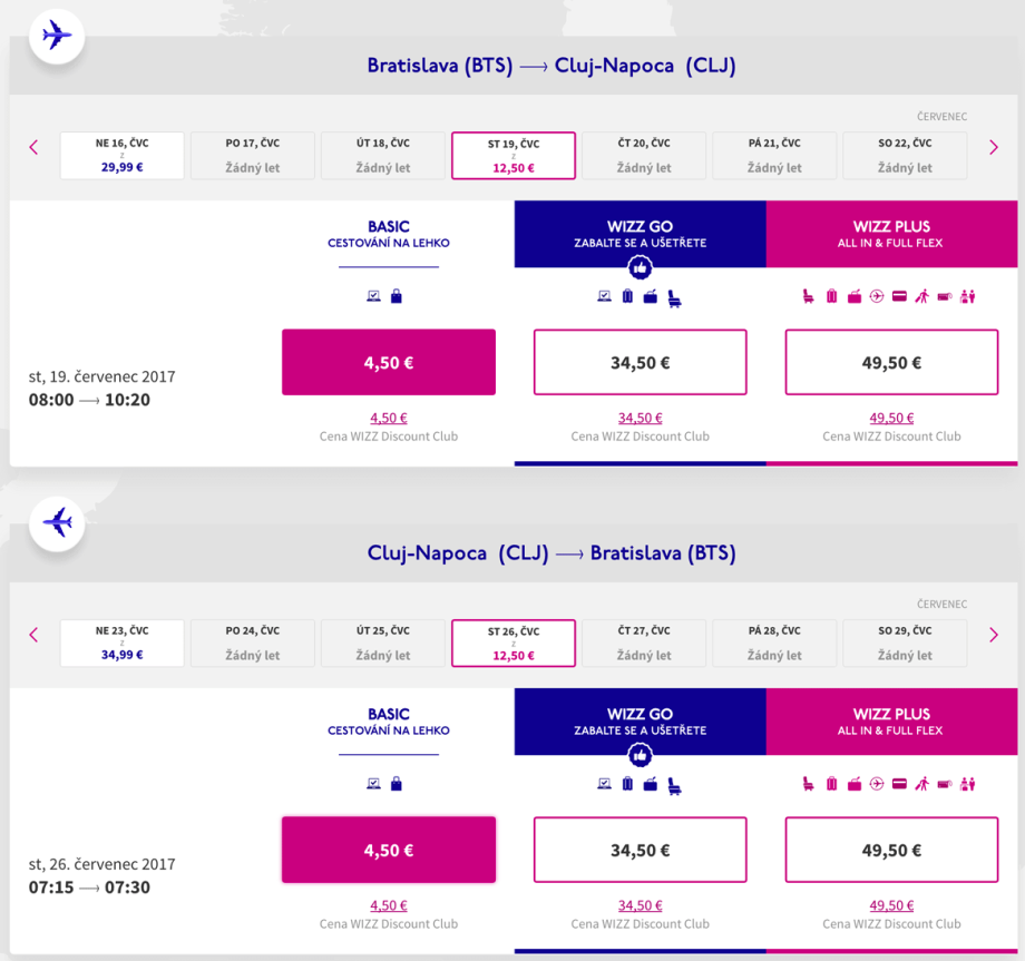 Nejen k týdennímu treku napříč Rumunskem uvítáte zpáteční letenky z Bratislavy do Kluže, které jsou dostupné během letních prázdnin každou středu za 9 € – cena platí pro všechny, tedy i nečleny klubu aerolinií Wizz Air.