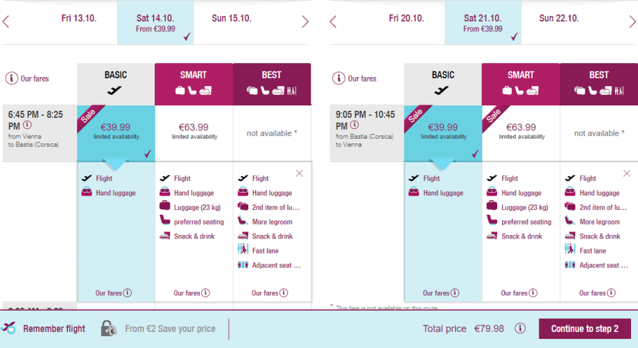 Akční říjnové letenky společnosti Eurowings z Vídně/Mnichova do korsické Bastie umožní pohodovou týdenní říjnovou dovolenou (odlety jsou vždy v sobotu) bez veder a davů turistů a s mnohem příjemnějším cenami ubytování než v létě. Zpáteční letenky jsou k dostání za 80 € / 2.090 Kč... My si ale pomůžeme slevovými vouchery na 10 € za odběr newsletteru, a to na každý let zvlášť. Zakoupíme tedy dvě jednosměrné letenky, přičemž na každé z nich ušetříme 10 €, celkem nás tak cesta vyjde na 60 € / 1.570 Kč.