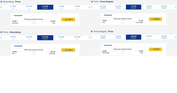 - 4.1., 9.1., 16.1. Norimberk – Porto: 22 €
