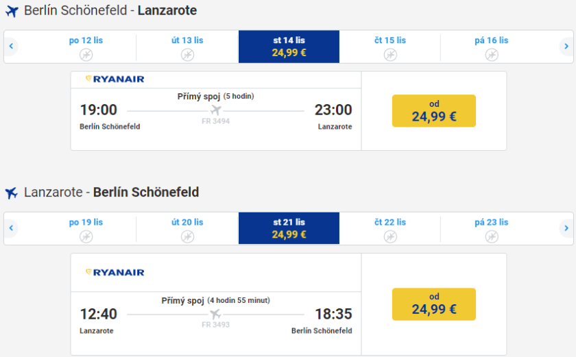 Využijte letošních prvních zlevněných letenek pod 1.500 Kč k podzimní cestě na oblíbené Kanárské ostrovy. Společnost Ryanair přichází se zpátečními letenkami z berlínského letiště Schönefeld na ostrov Lanzarote za rovných 50 €, tedy 1.290 Kč. Listopadové termíny jsou pro cestě na Kanáry ideální. Ostrovy jsou jedním z nejbližších míst, kde je i během naší zimy příjemné podnebí vybízející k odpočinku a poznávání krás exotické sopečné krajiny.