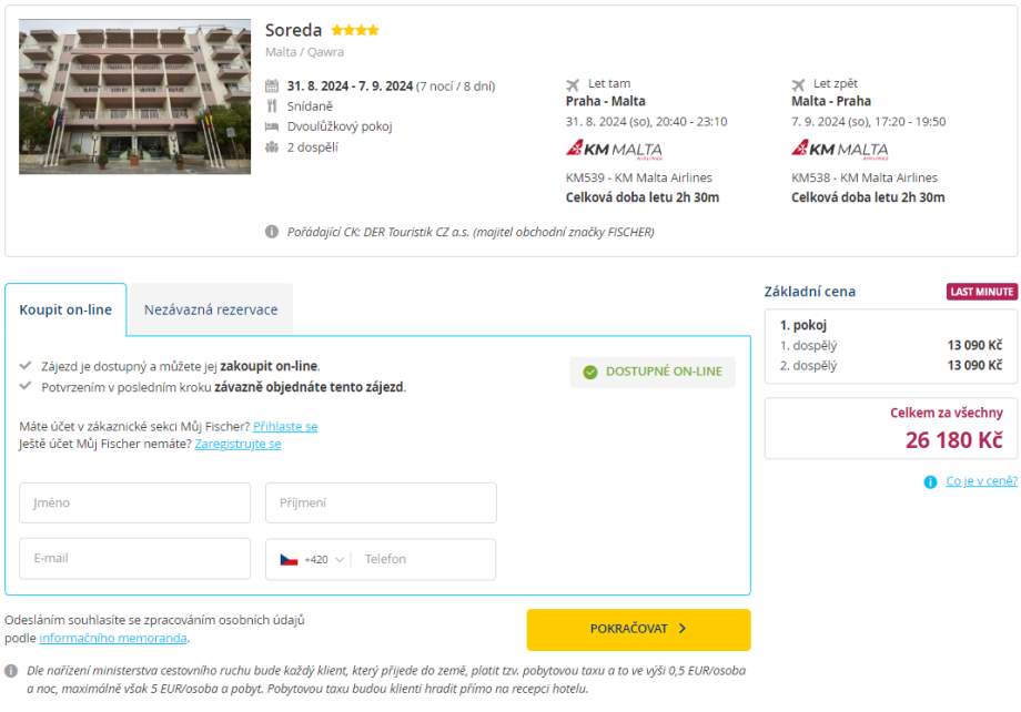 Oproti tomu za 13 090 Kč máte v ceně zpáteční letenku s odbaveným zavazadlem, 7 nocí se snídaní a navíc ještě transfer z/na letiště.