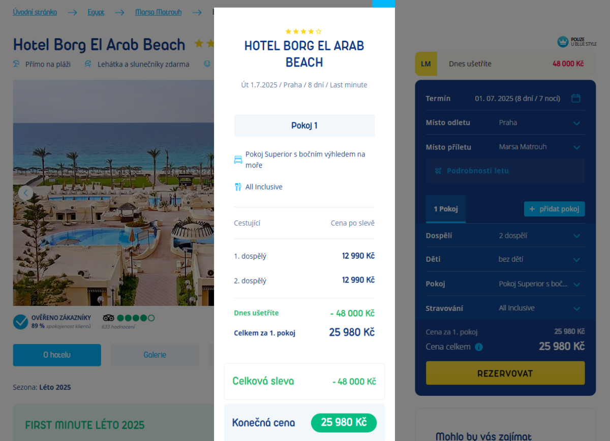 - 4* Borg El Arab Beach Resort v termínu 1. 7. – 8. 7. nebo 4. 7. – 11. 7., za 12 990 Kč