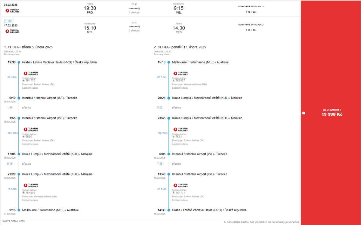 - Čeká tě přestup na letišti Istanbul + Kuala Lumpur