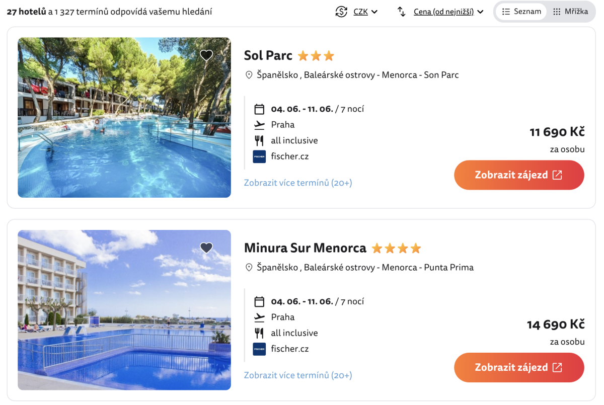 Sílící konkurence na českém trhu snižuje ceny i do exkluzivních a jinak drahých destinací jako je konkrétně Menorca.