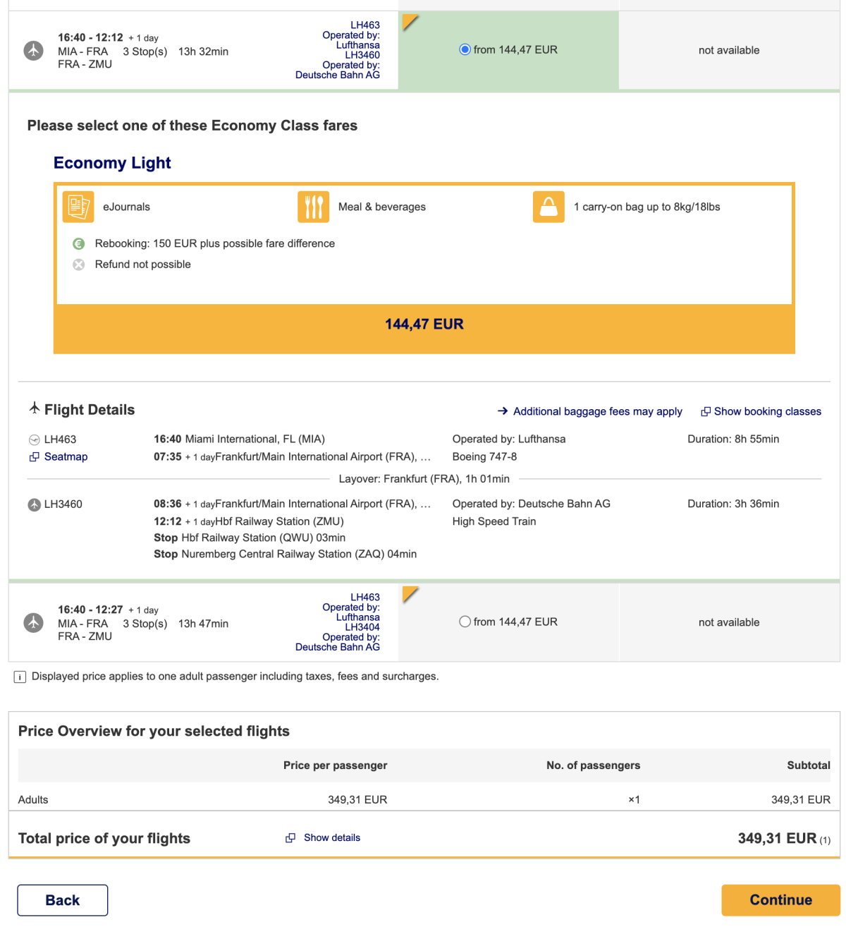 Výhodné letenky na Floridu aktuálně pořídíte během hlavní sezóny z Mnichova. Vůbec nejlevnější kombinace mezi Mnichovem a Miami je díky multimodální dopravě, a to vysokorychlostním vlakem z Mnichova do Curychu a z Curychu s aeroliniemi Swiss přímo do Miami. Zpáteční cesta vychází na 350 EUR od ledna do června 2023.