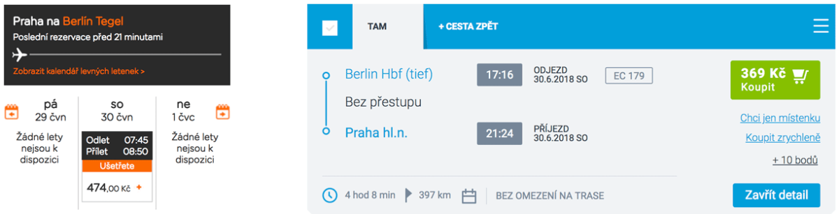 Tam poletíte ráno v 7:45 z Prahy a přistanete v Berlíně v 8:50. Jednosměrné letenky, klidně na sobotu, vyjdou na 474 Kč při cestě 2 osob.